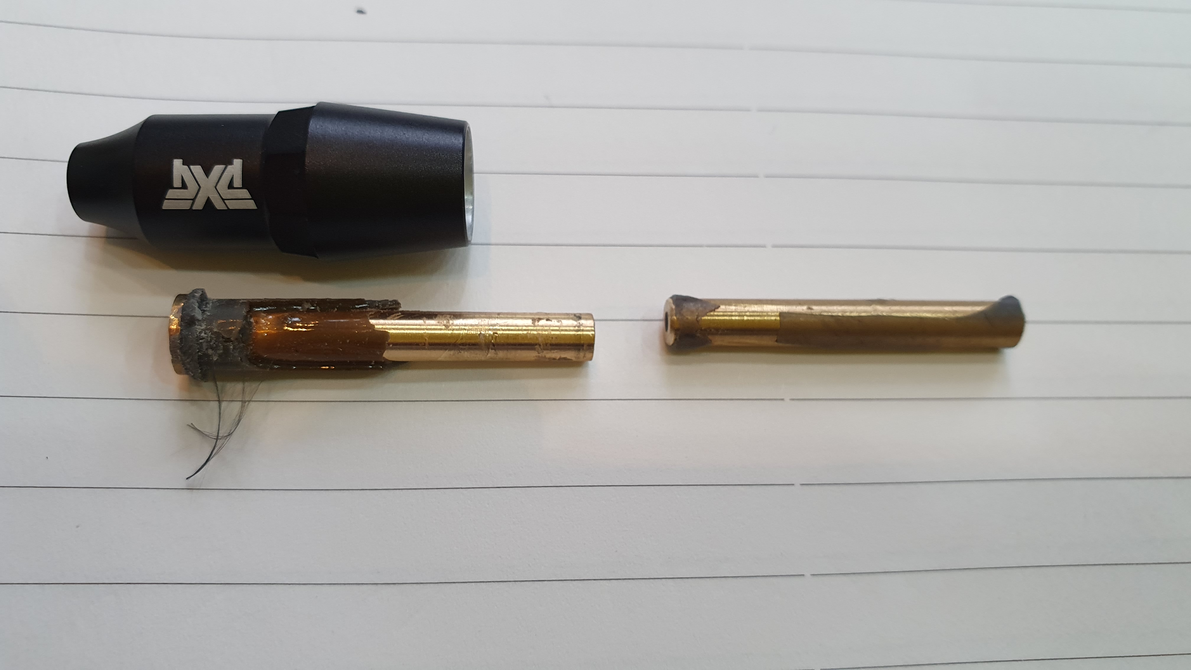 아무튼 뭐 그런게 중요한게 아니고 ... 어떤 고객이 꽤나 비싼 드라이버헤드와 그보다 비싼 샤프트를 조립하여 구입한 뒤 마음 고생을 심하게 하다가 센터를 방문하였습니다. 내가 이 일을 시작하고나서 지금까지 여러가지 조립 방법을 보아왔고 익혀왔지만 샤프트 안에서 이런것들을 본 적은 있지만 이렇게나 본 적은 처음이기에 같이 보고 각자의 판단대로 선택할 수 있도록 하자는 취지에서 사진을 몇장 찍었습니다.