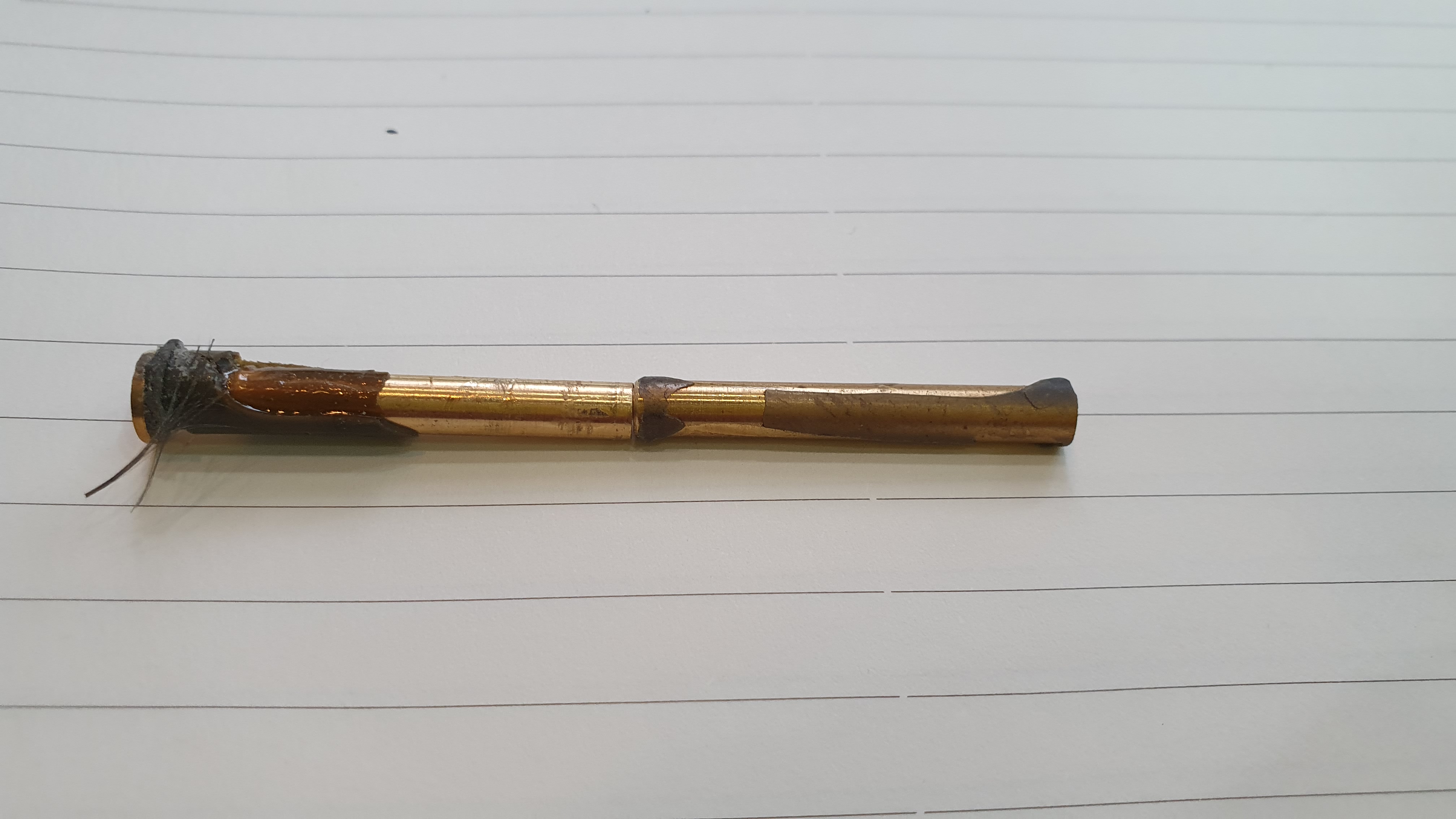 이놈이 대략 길이가 7~10cm는 되어 보이고 확실한 건 같은 넘 두개를 이어서 넣었다는거 ... 그리고 연결해서 넣은건 아니고 하나는 아래서 하나는 위에서 넣은 것으로 보인다는 것이고 더 깊히 들어간 것은 앞을 절단해서 넣었다는 것입니다. 정성과 아이디어가 정말 돋보이는데 ....