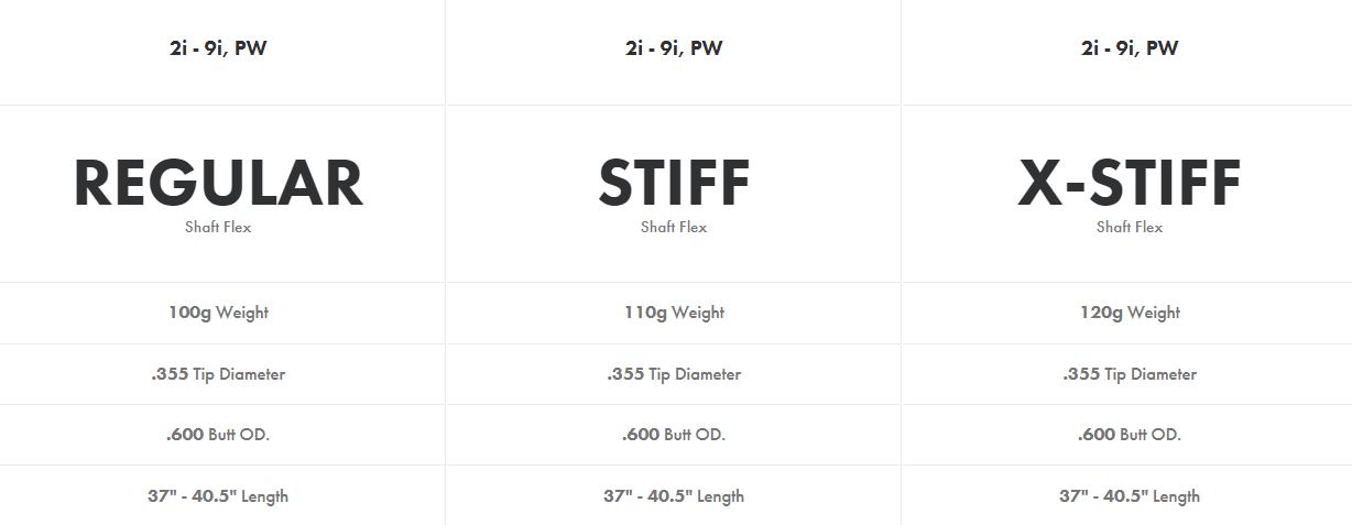 - 100g과 110g은 120g 이상의 샤프트 또는 100g 아래의 샤프트와 구분되어 샤프트 교체를 희망하는 대다수의 골퍼의 만족도가 높은 무게 범위입니다